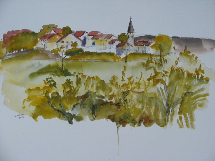 Le village de Grand Corrent (Ain) Aquarelle sur papier – 50/65cm – mai 2008